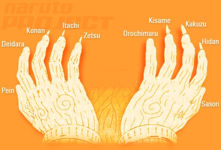 Pain & Konan – {spoiler} a última dupla a aparecer contém a única mulher da organização. Os dois agem em sincronia um com o outro, por Konan ser submissa às ordens de Pain, e pelo fato dos dois serem completamente focados em um objetivo em comum. {spoiler}